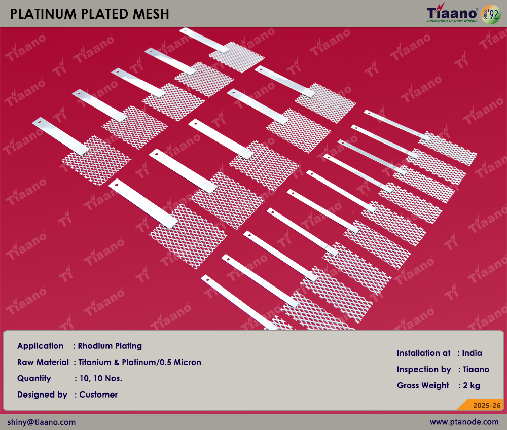Rhodium Plating is an expensive and delicate process. Using inferior lead or carbon anodes can lead to bath "poisoning," resulting in dull or darkened finishes. By contrast, a high-quality Platinum Plated Mesh acts as a permanent anode that does not dissolve into the electrolyte.